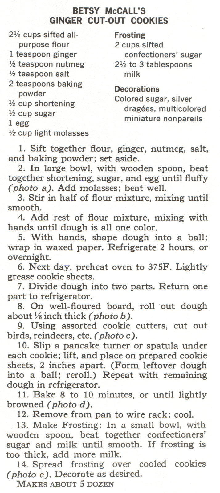 Betsy McCall's Ginger Cut-Out Cookies have a secret ingredient besides the ginger, nutmeg, and molasses. The little italicized references to photos a-e give you a hint about the real break-out star: Betsy McCall herself.