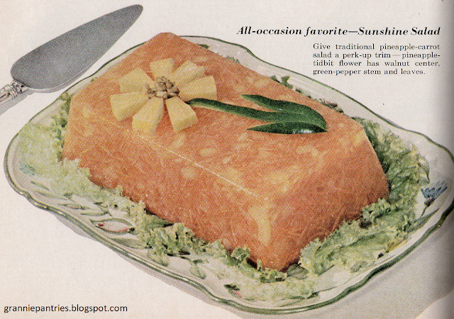 And if your tastes run to the inedible monstrosity in Jell-O (rather than the adorable, sweet pineapple flower on Jell-O) variety, I have one final recipe for you from