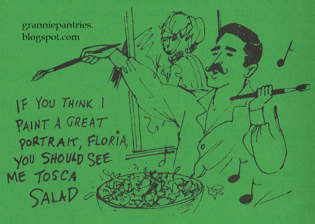 Okay-- I teased you when I introduced Culinary High Notes (Toledo Opera Guild, 1978) because the post was just a bunch of weird opera-related cartoons-- no recipes! Now let's check out some of the recipes in the book that promised to "turn your meals into dramatic performances."